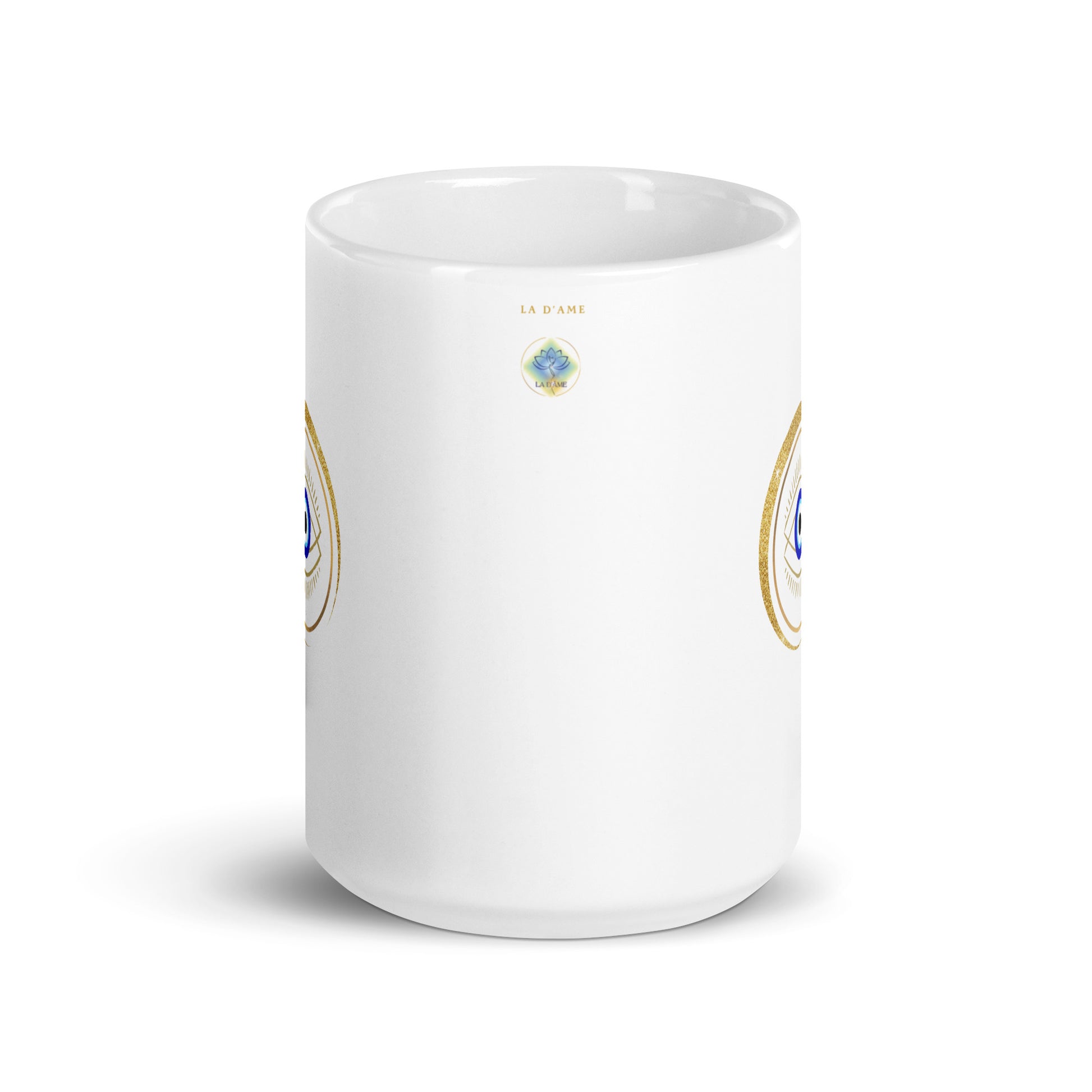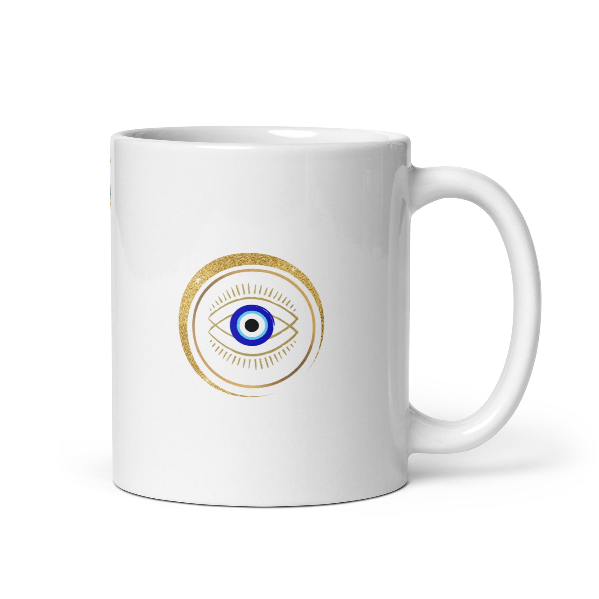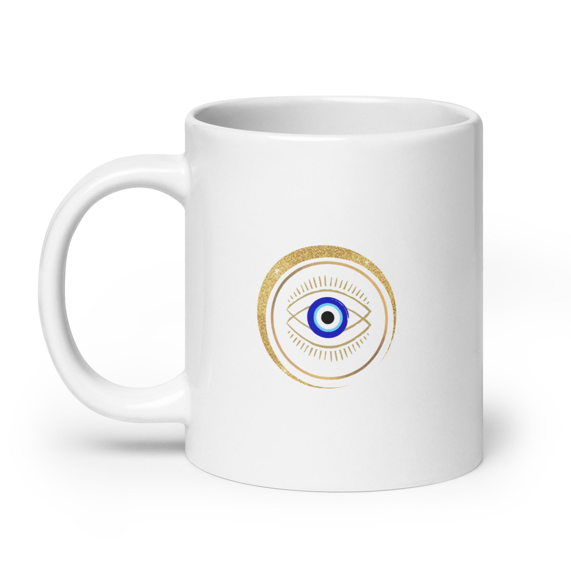 Taza blanca brillante - "Protección para los ojos"